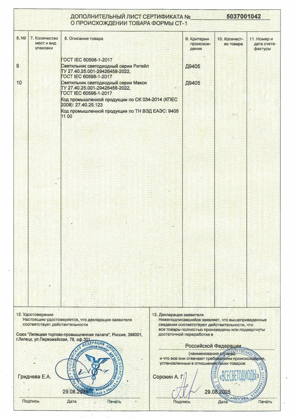 Наши светильники имеют большой срок службы - 100000 часов, безупречное качество подтверждается тем, что предоставляется гарантия До 8 лет.